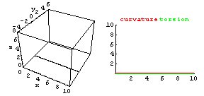 curvature = Curvature[ t ] and torsion = Torsion[ t ; n ] for t in [0,10].