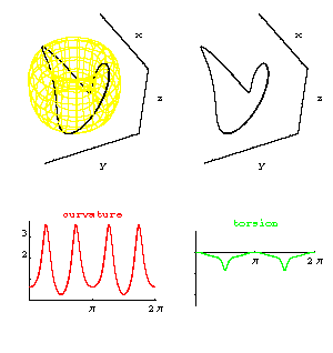 curvature (red) and torsion (green) functions for this curve, graphed over the